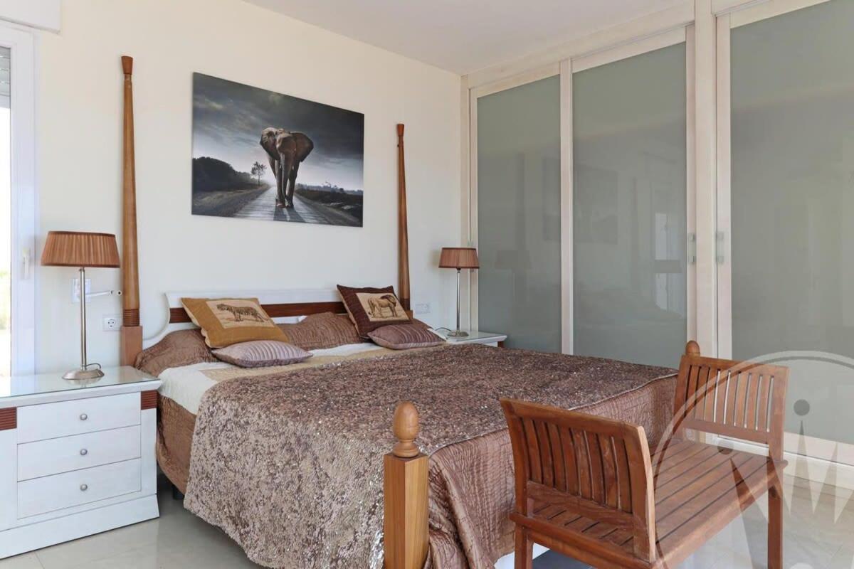 La villa cuenta con 5 dormitorios, 4 baños, ropa de cama, toallas, TV, cocina totalmente equipada y patio con vistas al mar.
