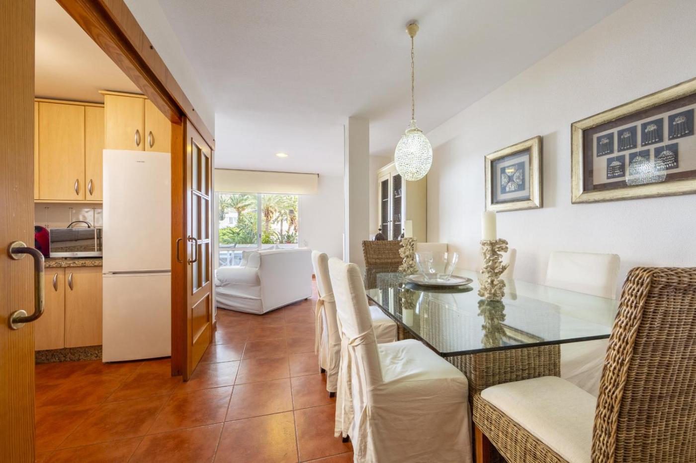 El apartamento cuenta con 3 dormitorios, una cocina con nevera y lavavajillas, y 2 baños con ducha, secador de pelo y lavadora. Hay toallas y ropa de cama en el apartamento.