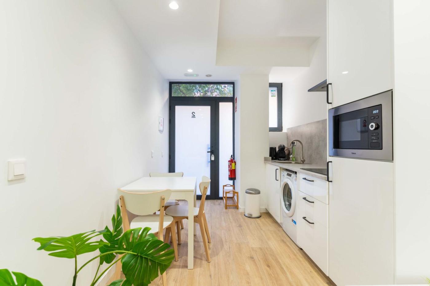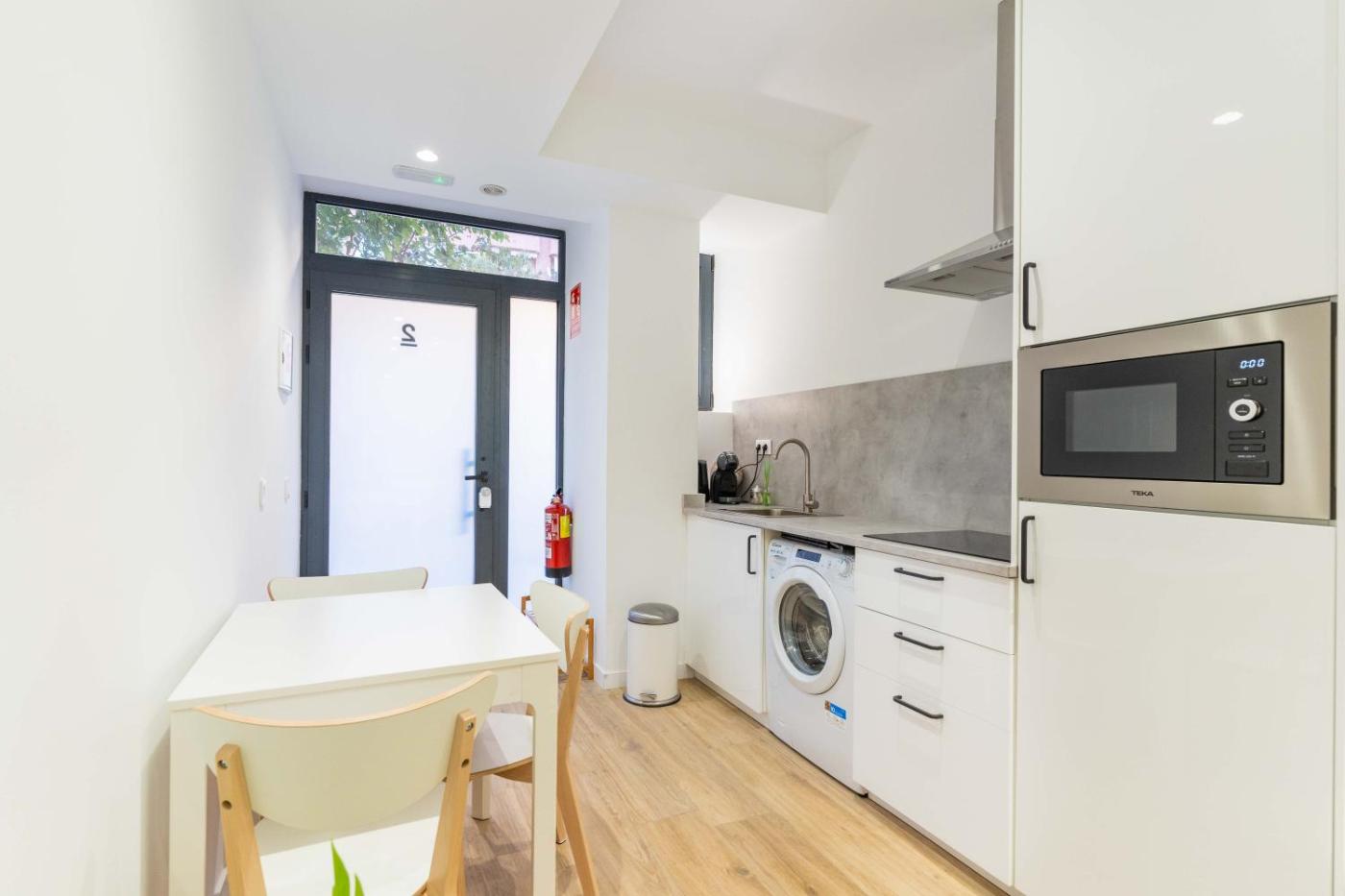 Estudio Estándar. The studio features air conditioning, a washing machine, as well as a private bathroom boasting a shower and a hairdryer. Meals can be prepared in the kitchen, which has a refrigerator, kitchenware, a microwave and a tea and coffee maker. This studio offers heating and a TV. The unit has 2 beds.