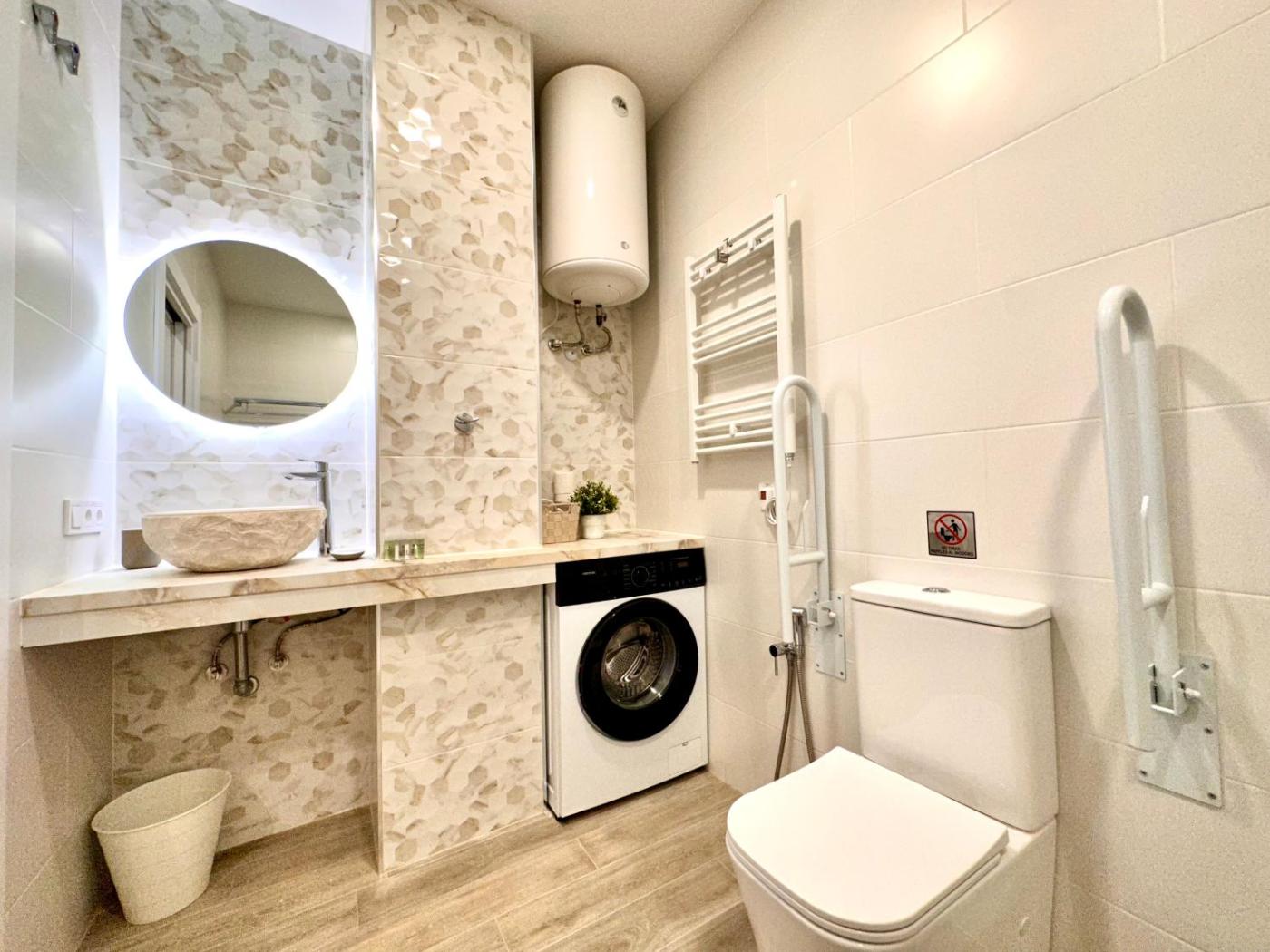 Apartamento de 1 dormitorio. Featuring a private entrance, this air-conditioned apartment comprises a kitchen, 1 bedroom and 1 bathroom with a walk-in shower and a hairdryer. Guests can make meals in the kitchen that is equipped with a stovetop, a refrigerator, a dishwasher and a microwave. This wheelchair accessible apartment features a washing machine, a seating area with a flat-screen TV and a roll-in shower. The unit offers 2 beds.